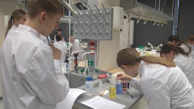 10. novembril osalesid meie kooli 8. ja 9. klassi õpilased taas Tartu Ülikooli Chemicumis laboritundides. Seekordseks eksperimendiprogrammiks oli “Varandus akvaariumis”. Saadi vastused küsimustele: kuidas ära tunda viit mikrovetikate liiki ja tuvastada mikroskoobi abil veeproovis leiduvaid mikrovetikad; milline tint on sinu markeri sees; kuidas tekib paberkromatogramm. Lisaks saadi selgeks enda valmistatud areomeetriga veeproovi soolasisalduse mõõtmine. Enne tuli aga seade valmis teha ja kalibreerida.
