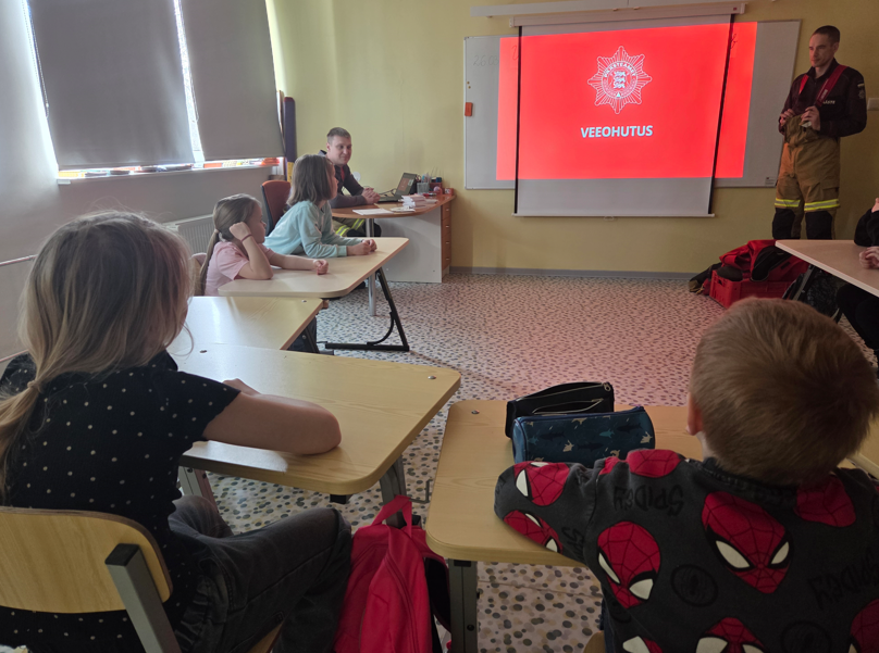 Õpilastel oli võimalus selga proovida päästevesti ning kohtumise lõpetuseks jagati neile märkmikud ja töölehed.
